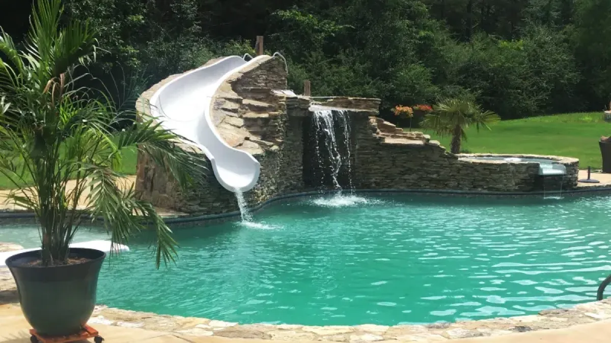 Our team can design and build your pool as an outdoor space where you’ll enjoy fun, relaxation and tranquility for years to come. We specialize in features such as: built-in seating, diving Rock, natural stone accents, water fountains, water slide, night lighting and sun bathing shelf.